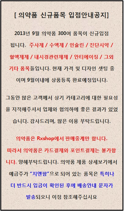 의약품 신규 300여 품목 신규입점 예정안내