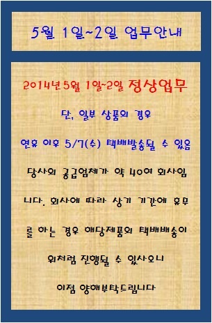 5월 1일~2일 업무안내