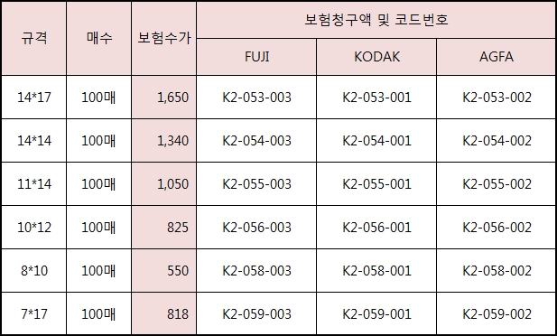 엑스레이 필름 보험수가 인상