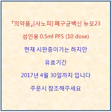 폐구균백신 뉴모23 판매중 (유효기간 17년 4월 30일)