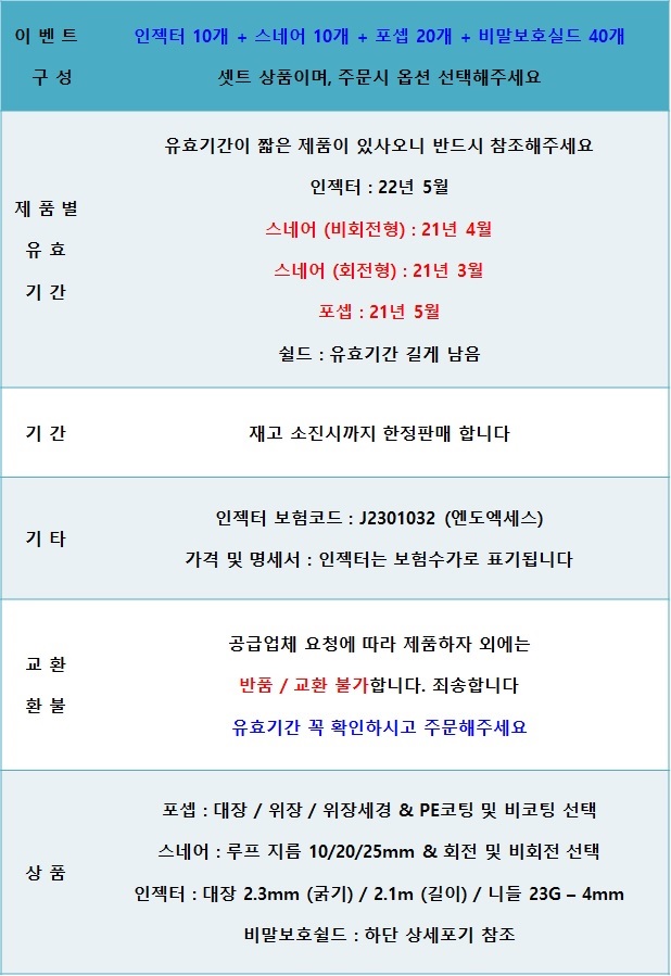 내시경 패키지 상품 (일부 상품 유효기간 변경안내)